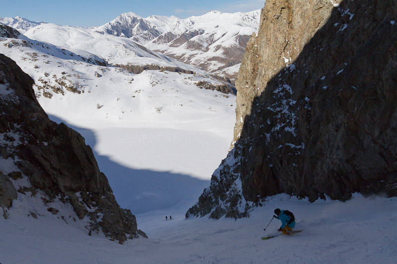 Ce magnifique couloir rectiligne donne sur le lac de Puyvachier. L’accès se fait par la combe Pacave, la plus belle et la moins fréquentée des différentes lignes freeride / free-ski des Vallons de Chancel, bien raide et régulièrement en bonne neige. Attention, il y a des risques d’avalanche (plaque à vent dû à des forts vent de sud-ouest, ouest…). Une courte traversée au dessus des falaises dominant le lac amène à l’entrée du couloir. Cette entrée peut être très étroite sur quelques mètres. (…)