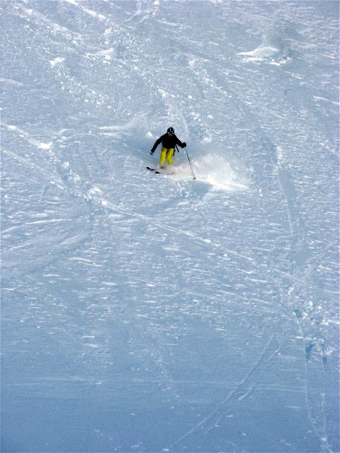Le Lac de Puyvachier est situé juste sous le refuge Chancel (2508m). Ce lac gelé l’hiver est dominé par d’impressionnantes barres rocheuses de 150m de haut. Trois couloirs : Patou, Banane, du lac, bien raides franchissent ces barres dans une ambiance très alpine. La Banane est le plus long d’entre eux et légèrement en courbe. L’entrée peut être technique et souvent en bosses. La pente principale assez large permet d’envoyer de la courbe moyenne. C’est le couloir idéal pour découvrir la pente (…)