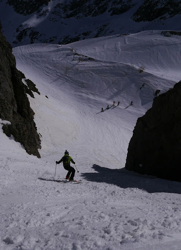 Le couloir de l’ours est court mais intense. L’accès se fait par les magiques pentes Est du téléphérique de La Grave La Meije. Attention avalanches et coulées sont possibles, car ces pentes sont exposées à plusieurs directions de vent et chauffent au soleil en fin de matinée. Ces lignes sont idéales pour envoyer de la grosse courbe en poudreuse dans du terrain bien raide. Deux entrées sont possibles dans le couloir : techniques, raides et étroites. Cela s’élargit avec souvent une congère (…)