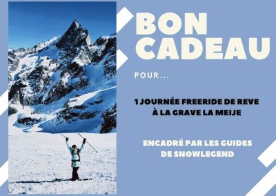 Snowlegend International Freeride Camp : + de 30 ans d’Expérience à La Grave avec plusieurs formules d’encadrement. L’équipe Snowlegend composée de guides UIAGM et moniteurs attentionnés vous guide en toute sécurité dans un environnement sauvage et des itinéraires hors-piste réputés mondialement. Seul, avec vos amis ou en famille, en ski ou en snow, en ski de randonnée ou en splitboard, vous bénéficierez des meilleurs conseils pour glisser en toute neige et dans toutes les conditions. Niveau technique requis : être à l’aise sur piste rouge ou noire. Que vous vouliez ne passer qu’une journée pour découvrir les Vallons de La Meije, profiter d’un weekend de freeride, d’un séjour de ski de rando ou de split-board ou faire un stage hors-pistes avec l’envie de vous perfectionnez en poudreuse, en descente de couloirs, en pentes raides... Réserver votre guide avec Snowlegend, c’est l’assurance d’une expérience inoubliable dans une super ambiance cool en Haute-Montagne. Keep Energy for riding Pow pOw poW with Smile !